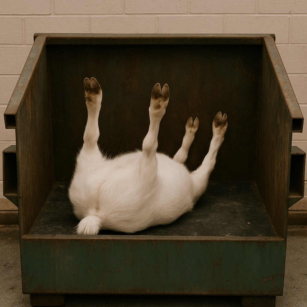 He dragged the goat to our old wood-paneled station wagon, tied a rope around its neck, pulled it to the end of the driveway, and hoisted it into the family dumpster.
